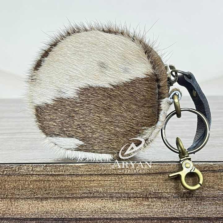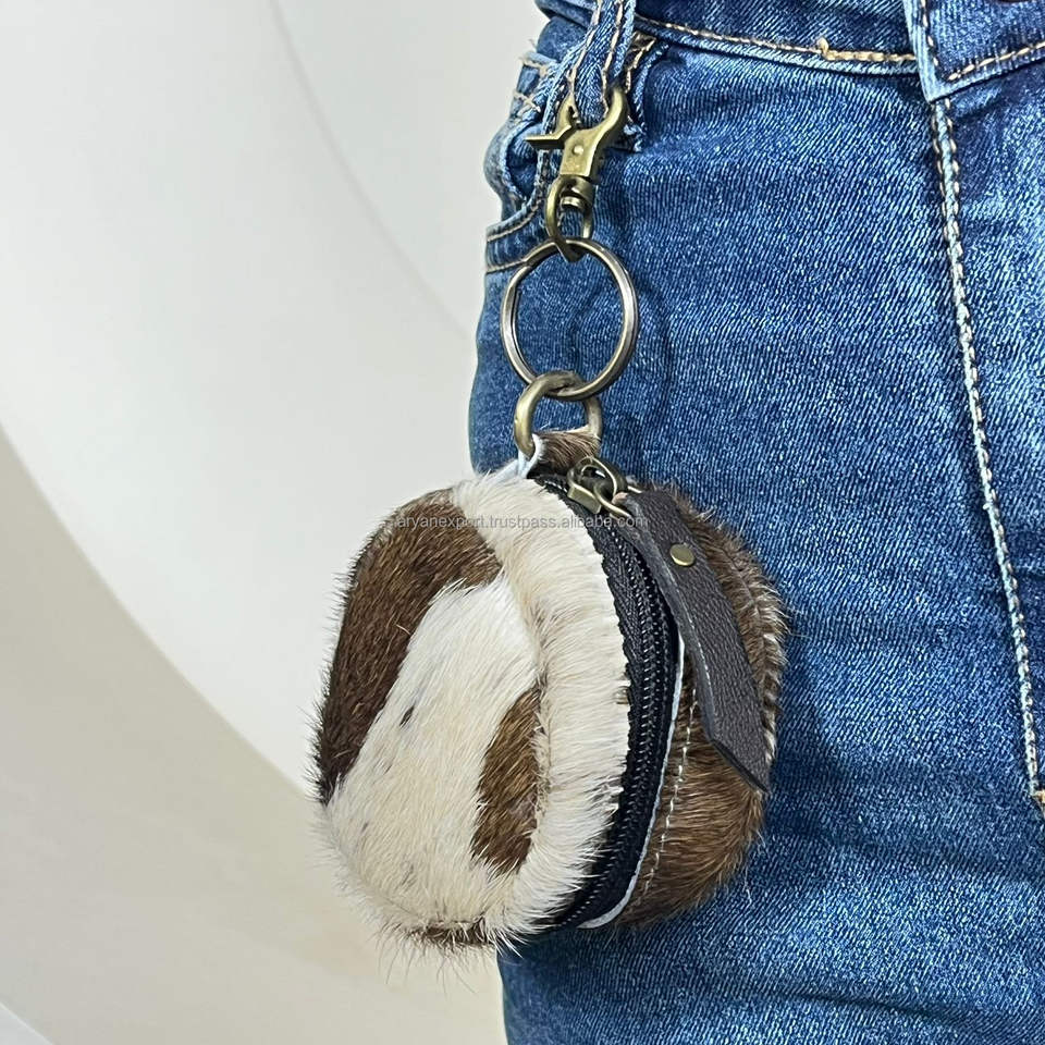 2026 March Expo Real Hair on Cowhide Leather Coin Purse Keychain Mini Round Shape Zipper Pouch For Coins, Keys & Small Essential