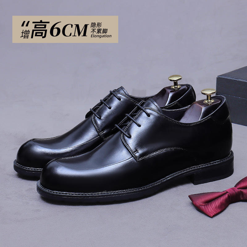 2026 Men's New British Casual Square Business Formal Lace-Up Breathable High-Heeled Genuine Leather Anti-Slippery Derby Shoes