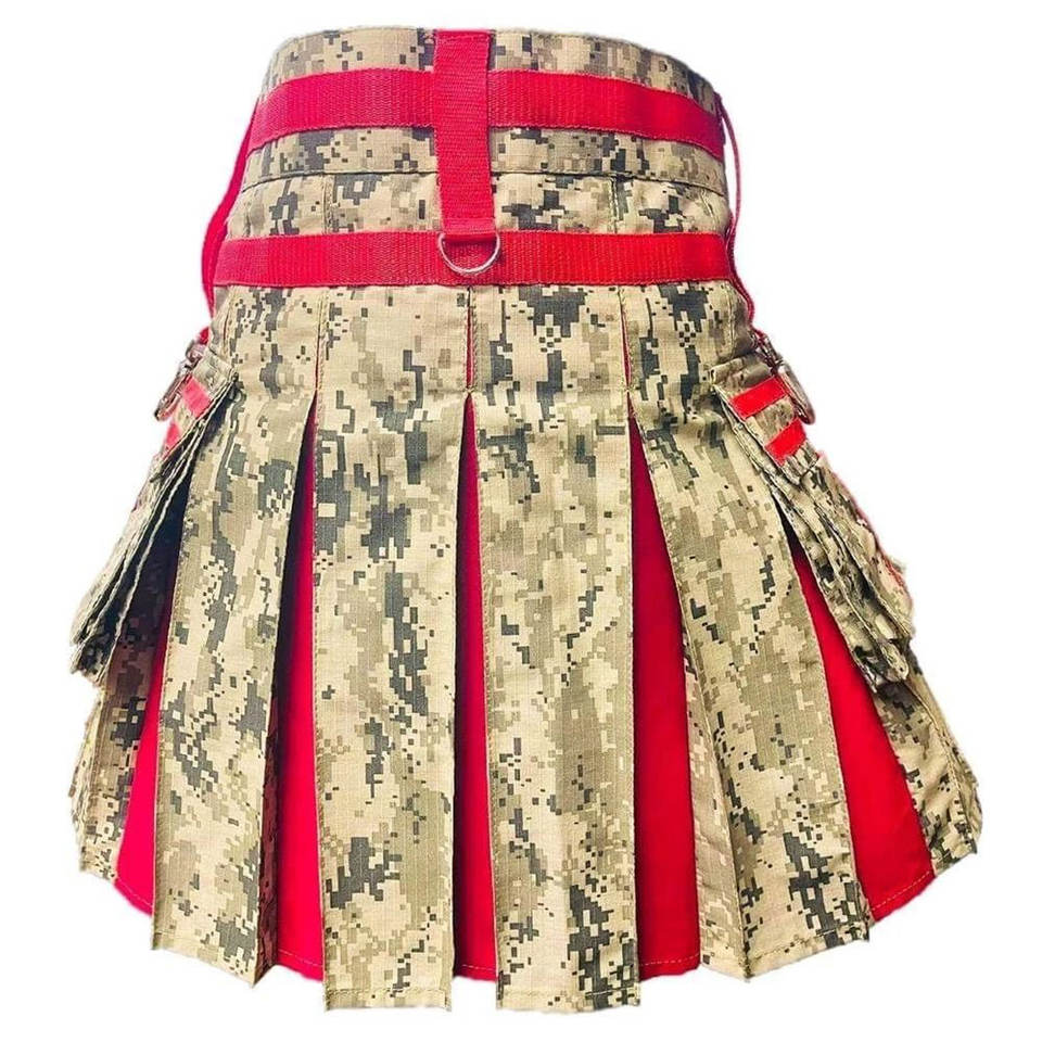 2026 Men's Scottish Camo kilt Red Pleats Highland Cotton Utility kilt Fashion kilt