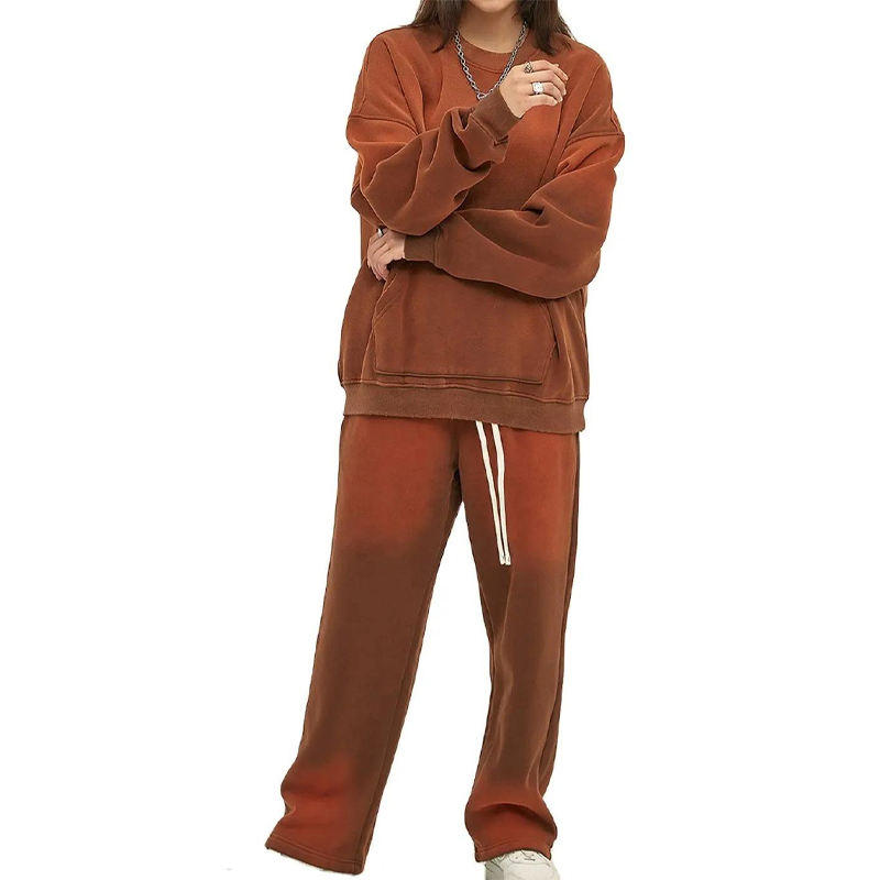 2026 Men's Winter Streetwear Crewneck Sweatsuits 100% Cotton Fleece Solid Front Custom Printing 360gsm Breathable Quick Dry