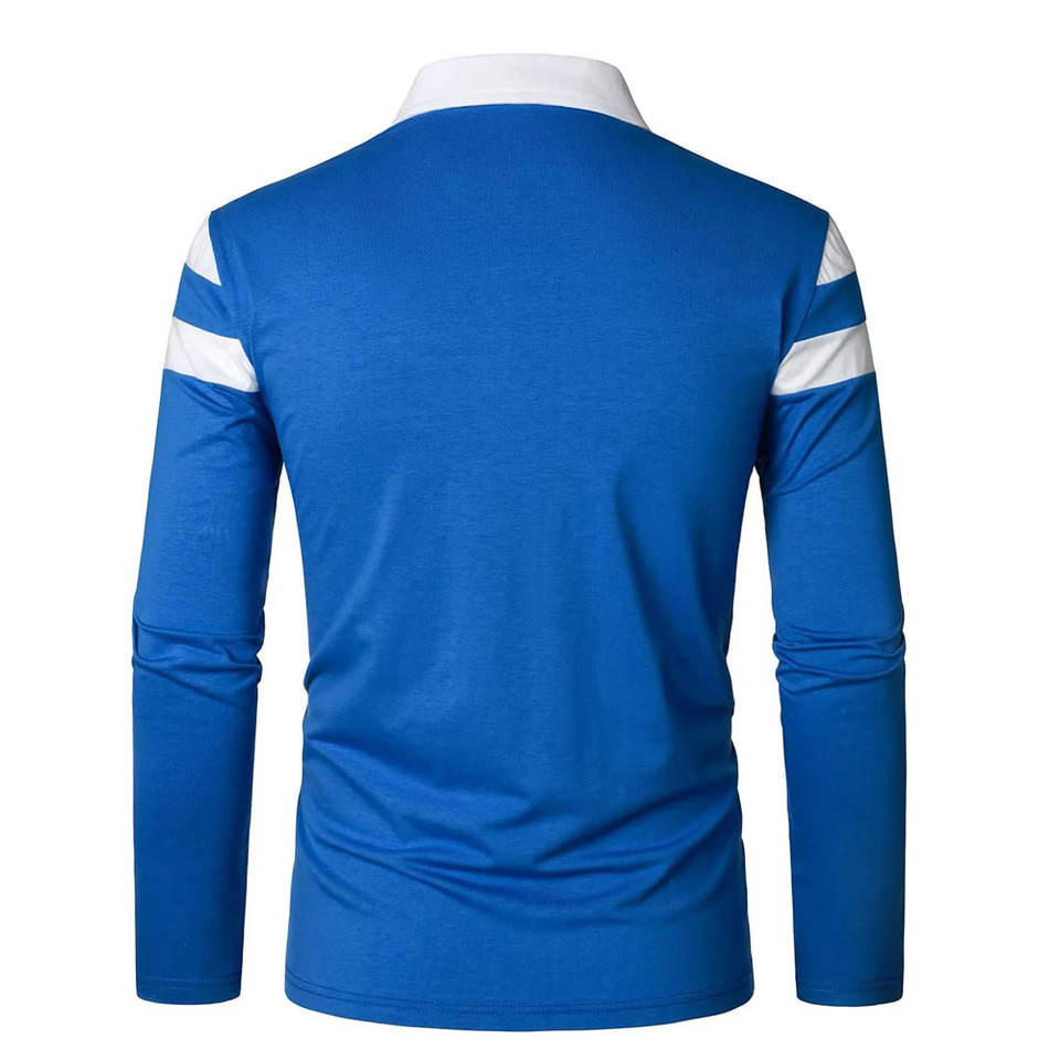2026 Mens Long Sleeve Polo Shirt Casual Slim Fit Shirts Contrast Color Patchwork T Shirts Cotton Tops