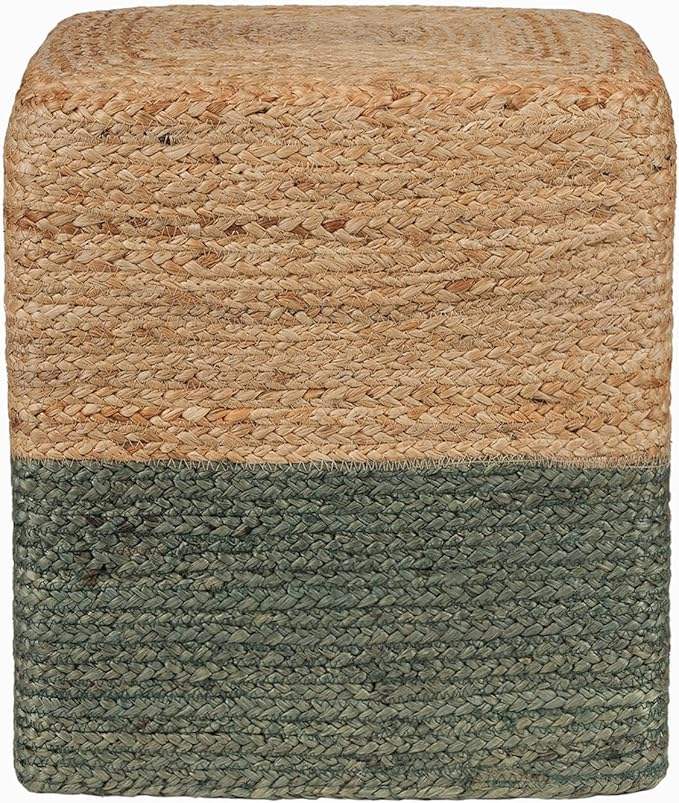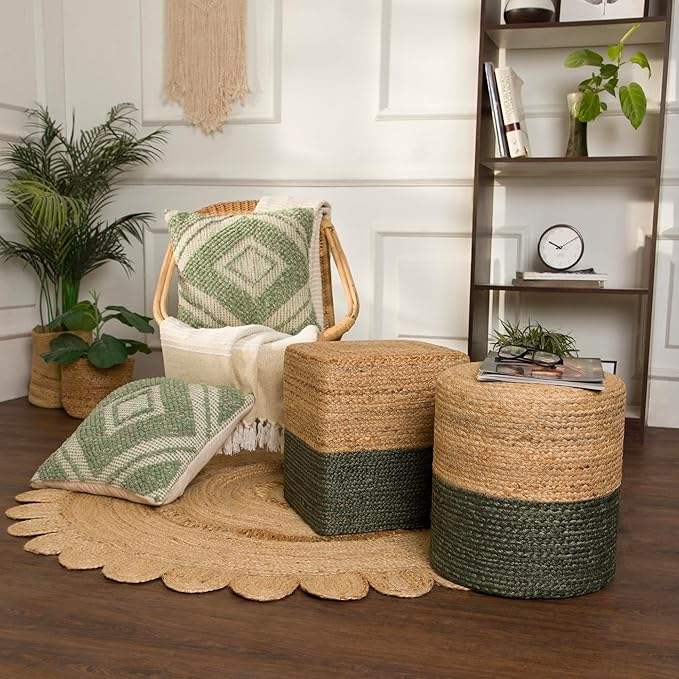 2026 Natural & Black Jute Braided Pouf 17.5 X 20.25 Inches Woven Footstool Stools & Ottomans"