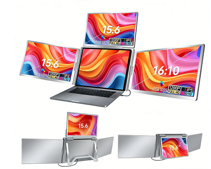 2026 New 3-Screen 15.6" TN IPS LCD 16:9 Business Portable Monitor HD MI+USB Type-C Interface 1920x1200 Resolution