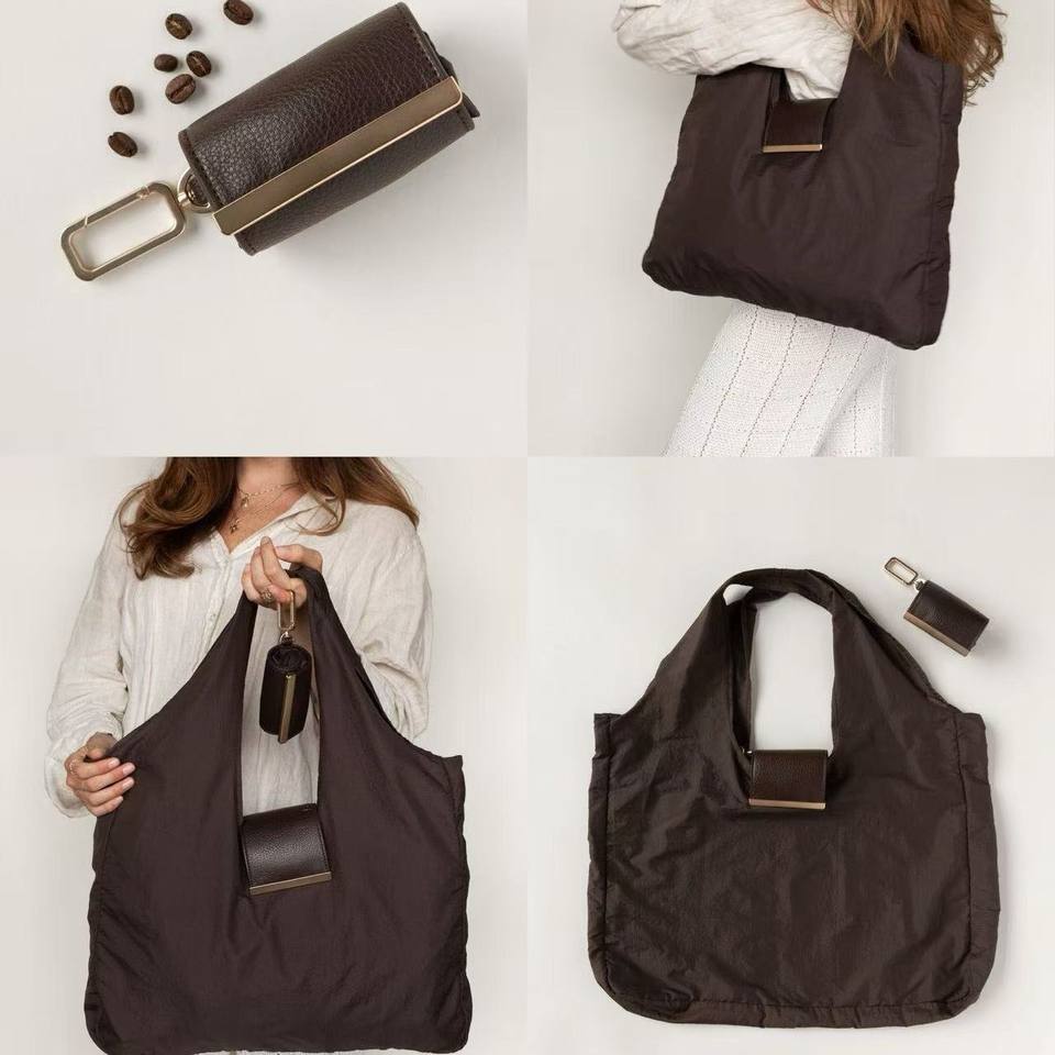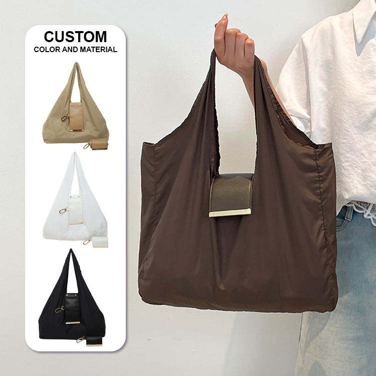 2026 New Arrival Custom Roll up Portable Foldable Under Recycled Nylon Shoulder Bag with Keychain Large Capacity Shopping Bag
