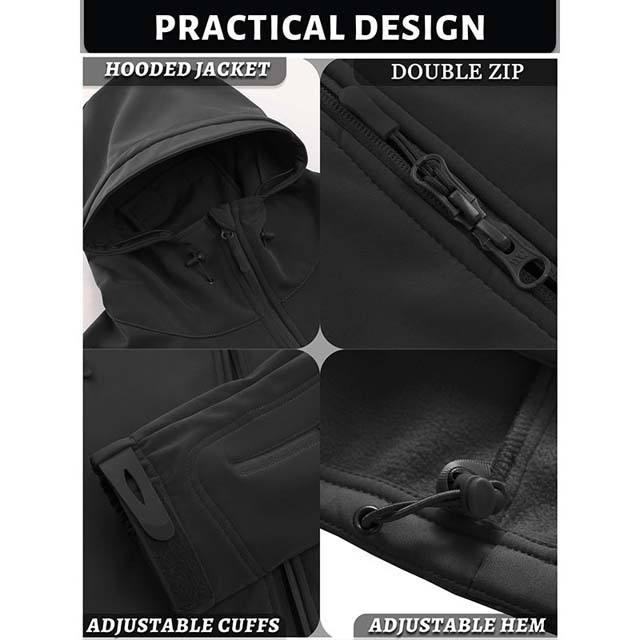 2026 New Arrival Unisex Casual Softshell Jacket Stand Hooded Heavy Fleece Lined Waterproof Autumn Windbreaker Warm Coat Front