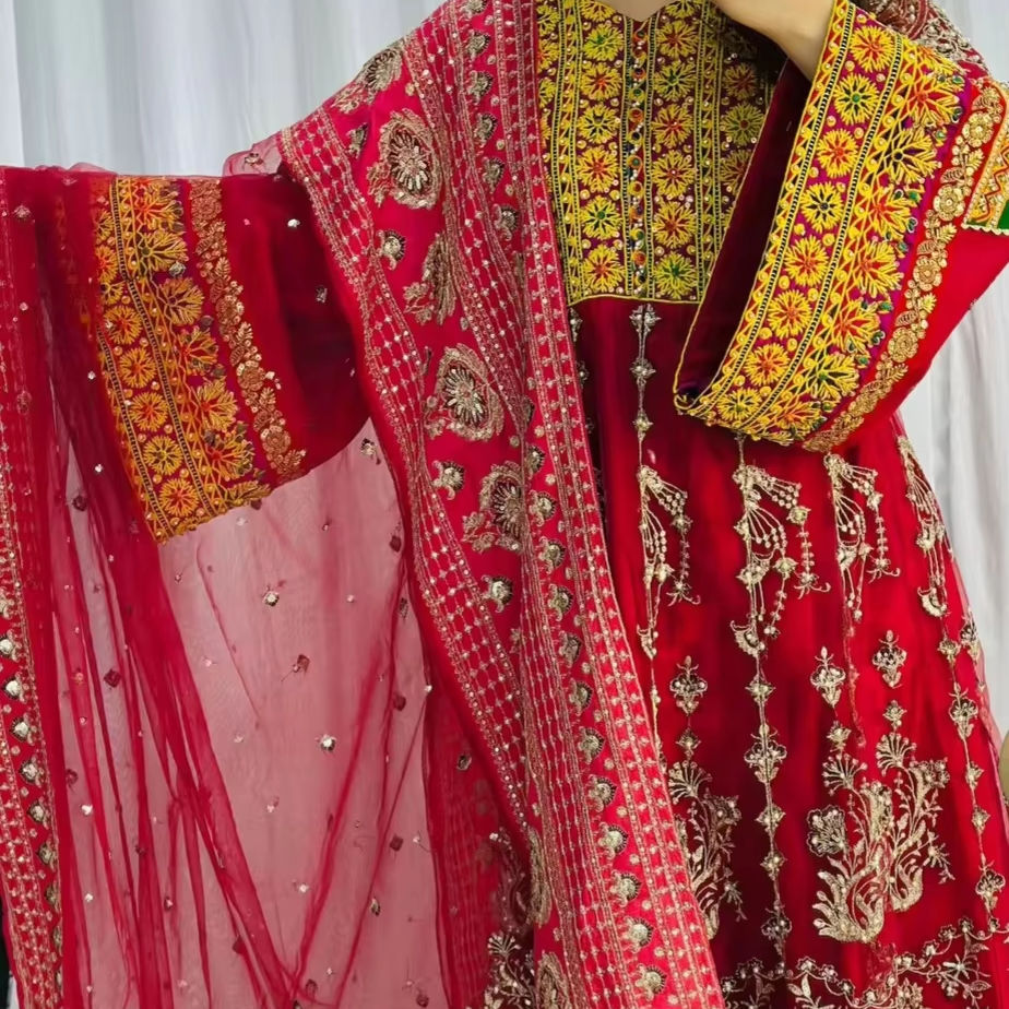 2026 New Arrival Zerdze Dress Madgul Ladies Maxi Afghani Guldoze Floral Kuchi Dress Long Sleeves Elegant for Parties Size XL