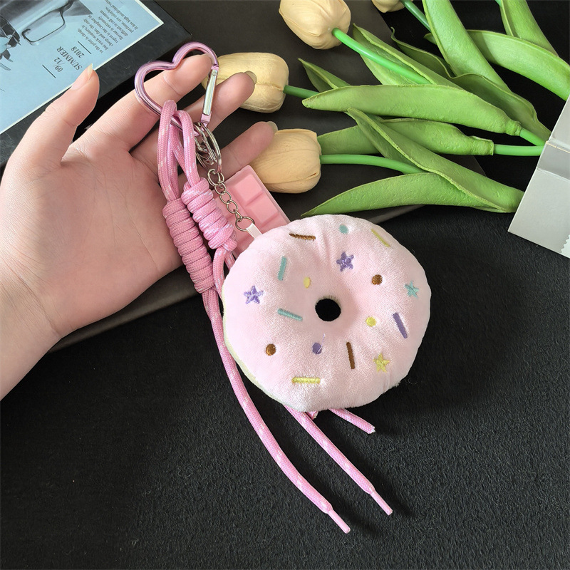 2026 New Arrivals Super Popular Cute Sweet Cartoon Plush Doughnut Toy Key Chain Bow Bead Pedant Keychain for Woman
