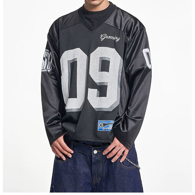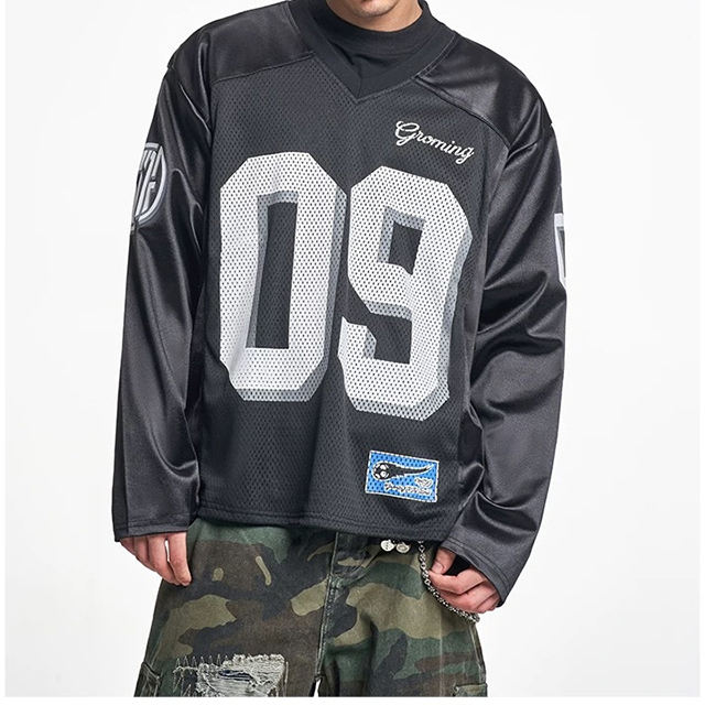 2026 New Autumn Trendy Sports Jersey Vintage Long Sleeve T-Shirt For Men Loose American Football Style Top