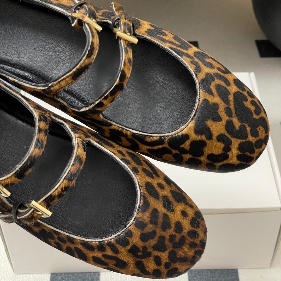 2026 New Autumn Winter Elegant Leopard Ballet Shoes Strap One Button Shallow 3cm Heel Sandals Headed Mary Flat Shoes Women's