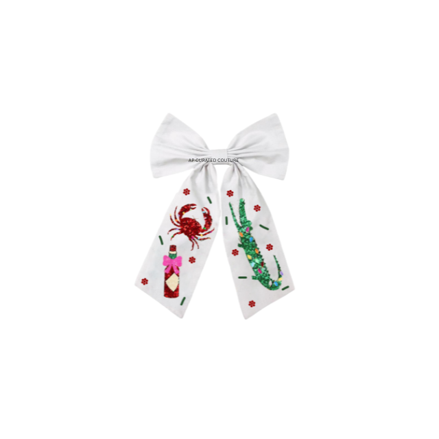 2026 New Collection Beaded Crawfish Season Bow Hand Embroidery Trending Hair Bow Alligator Clips Party European-American Style