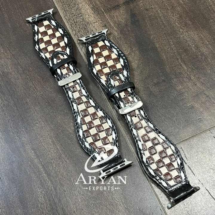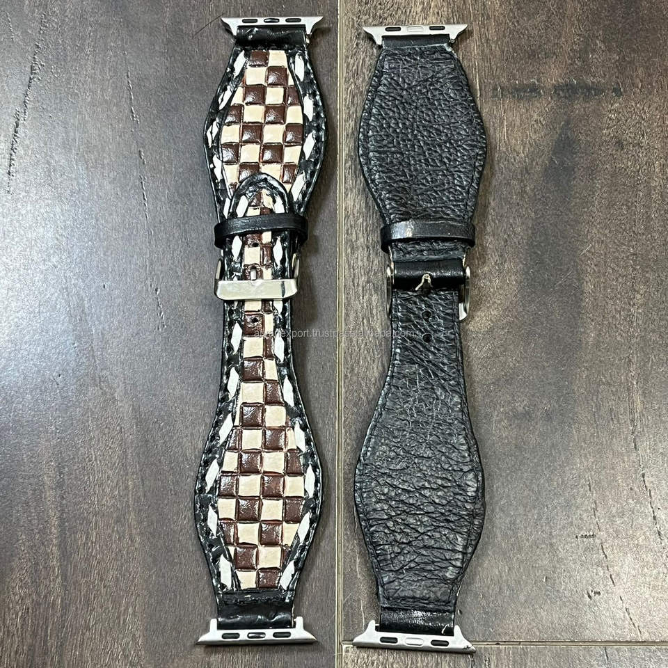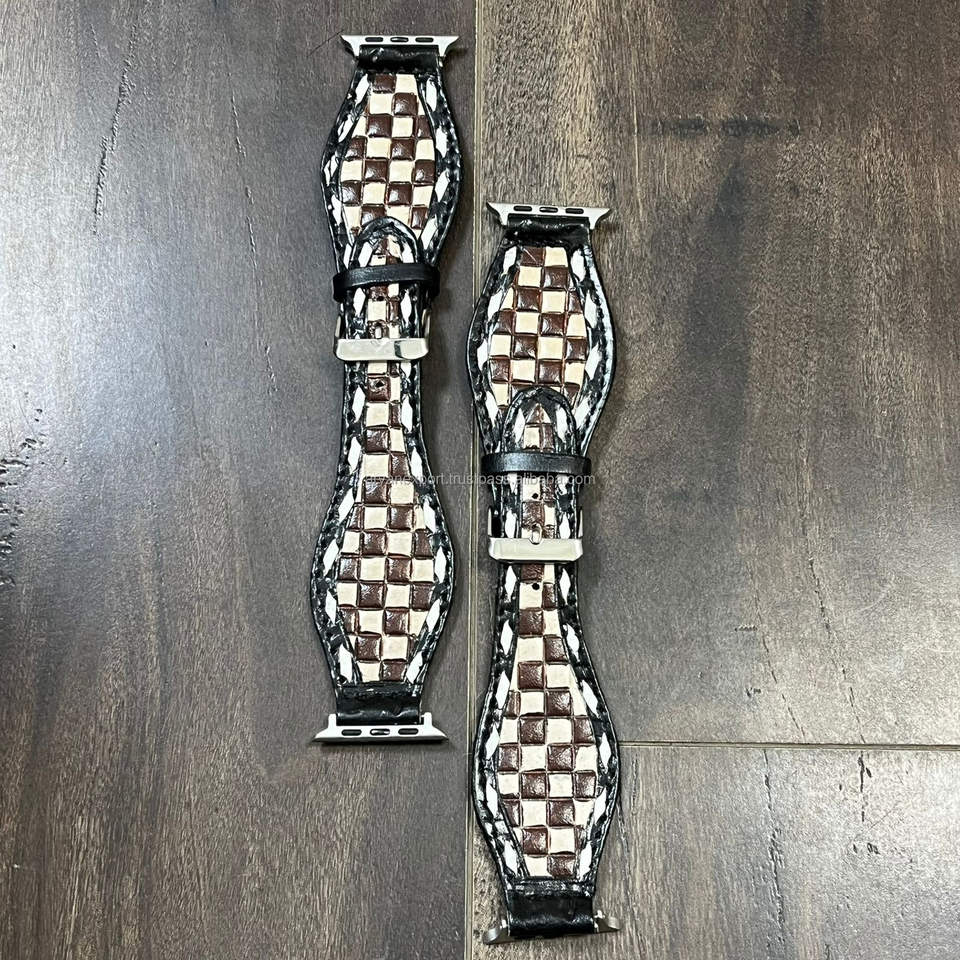 Product name:Hand Tooled Checkered Leather Smart Watch Band