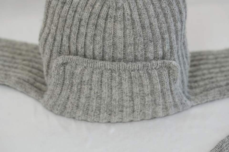 2026 New Design Grey Organic Mongolian Wool Hat | Adjustable Flat Knit Beanie | Custom Logo Winter Headwear Wholesale