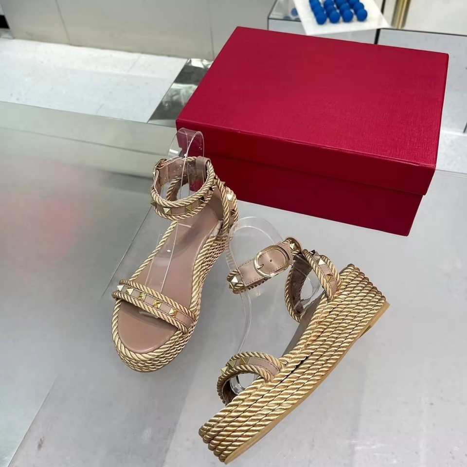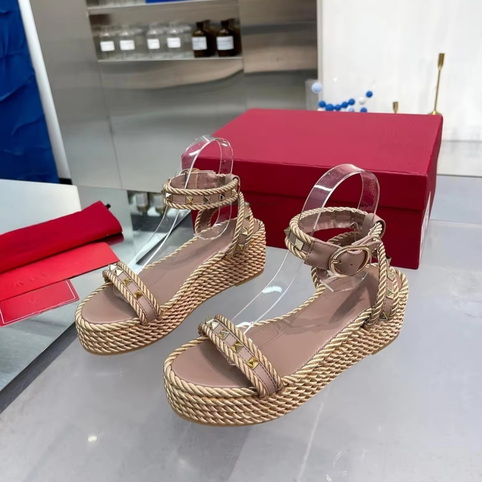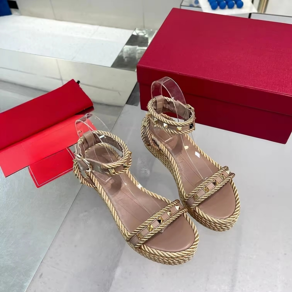 2026 New Designer Famous Brand Luxury Sandals Genuine Leather Knit Elevation Inside Anti-slip Rivet Sandals for Lady