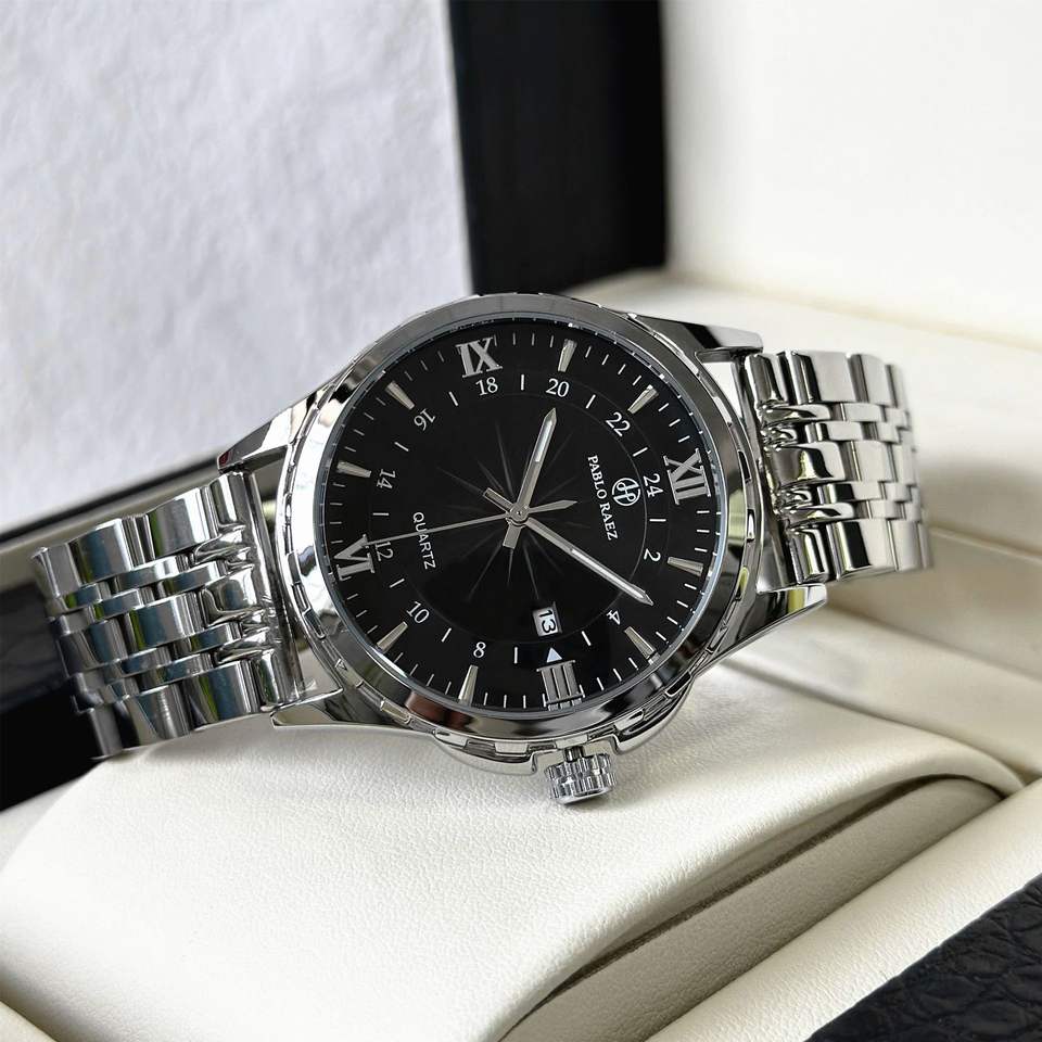 2026 New Fashion Men's Quartz Watch Alloy Stainless Steel Band Glass Waterproof Date Display Black White Business Casual Antique