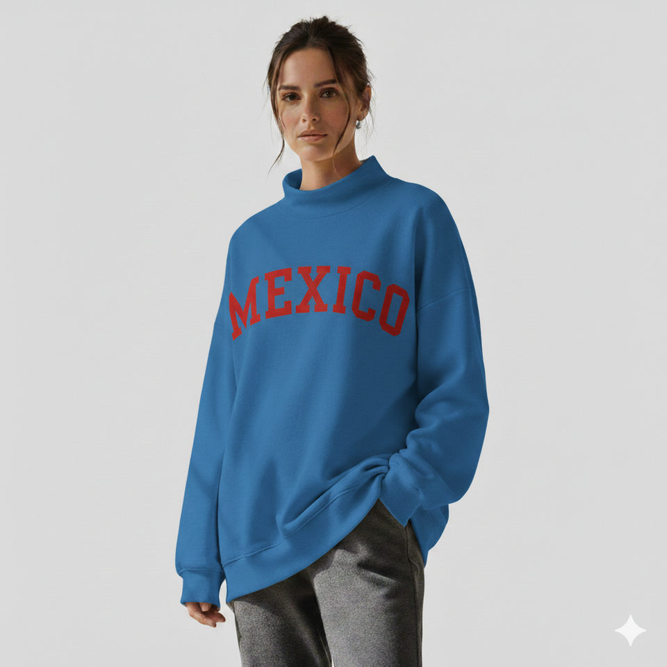 2026 New Fashion Women's Breathable Casual Embroidered Long Sleeve Knitted Oversized Mockneck Winter Pullover Sweatshirt