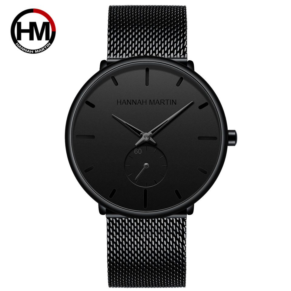 2026 New Hannah Martin Black Fashion Sport Simple Design Waterproof Stainless Steel Mesh Small Dial Men Quartz Watches