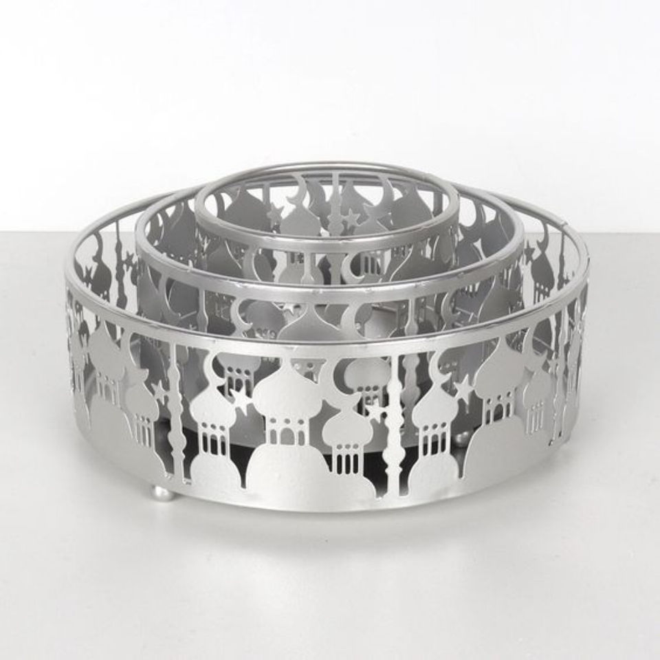 2026 New Luxury Large Silver Mirror Tray for Ramadan and Eid Decor Festive Islamic Accessories Made of Metal