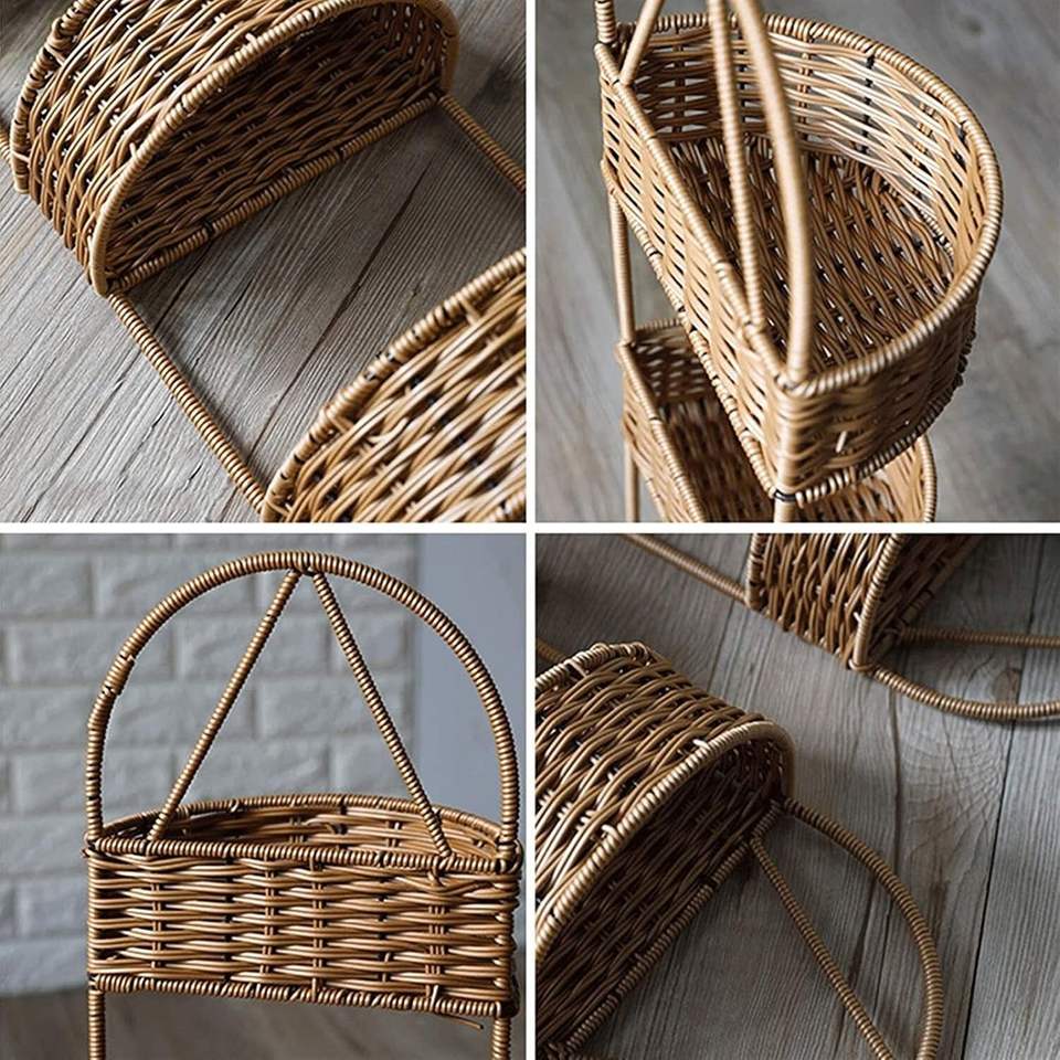 2026 New Nordic Storage Basket Rectangle Hand Woven Metal Iron & PP Rattan 3-Tier Hanging Eco-Friendly Multifunction Home Decor