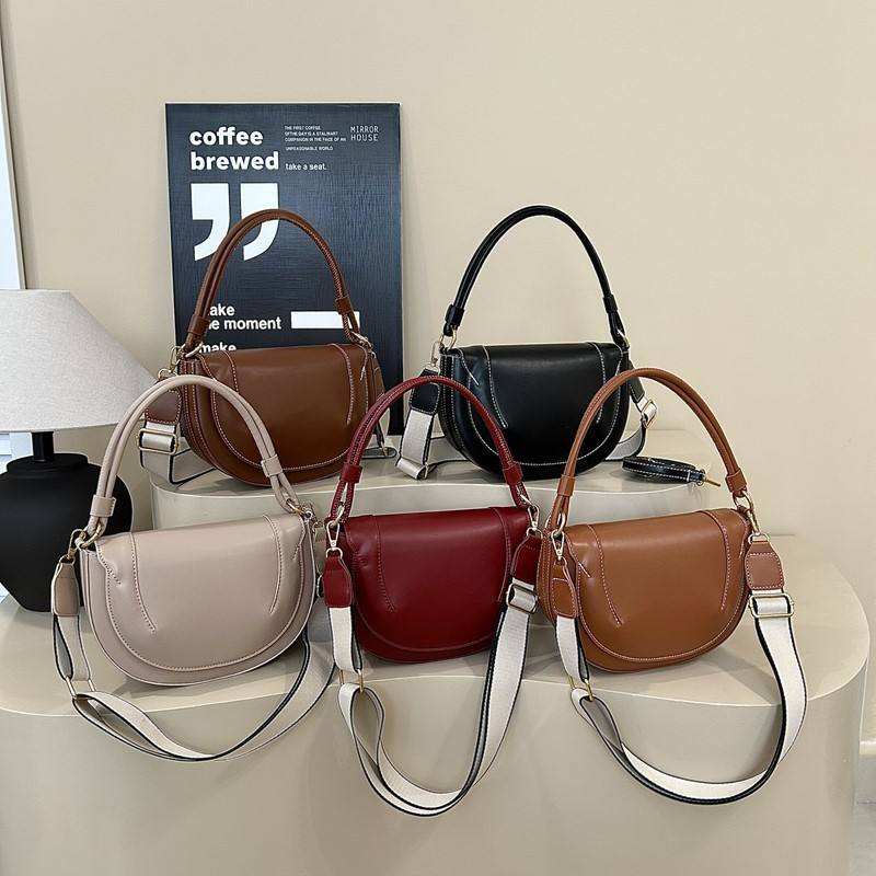 2026 New PU Fashion Zipper Closure Portable Crossbody Bag for Women, Retro Saddle Bag, Handbag