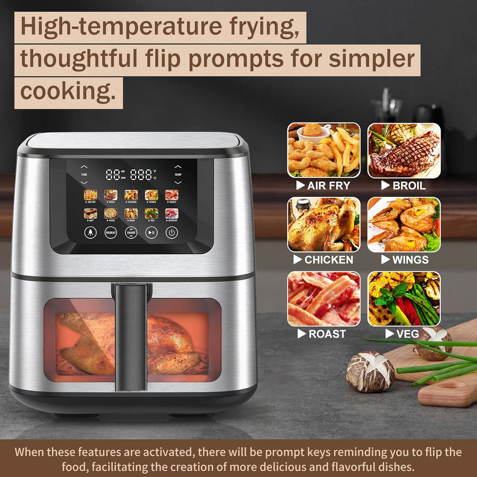 2026 New Style 8L Touch Control air Fryer Oven with Visible Cooking Window Single Pot 1800W LED Display Large Air Fryer Toaster