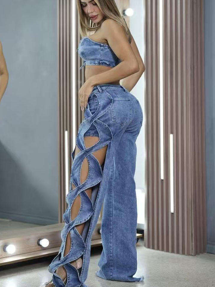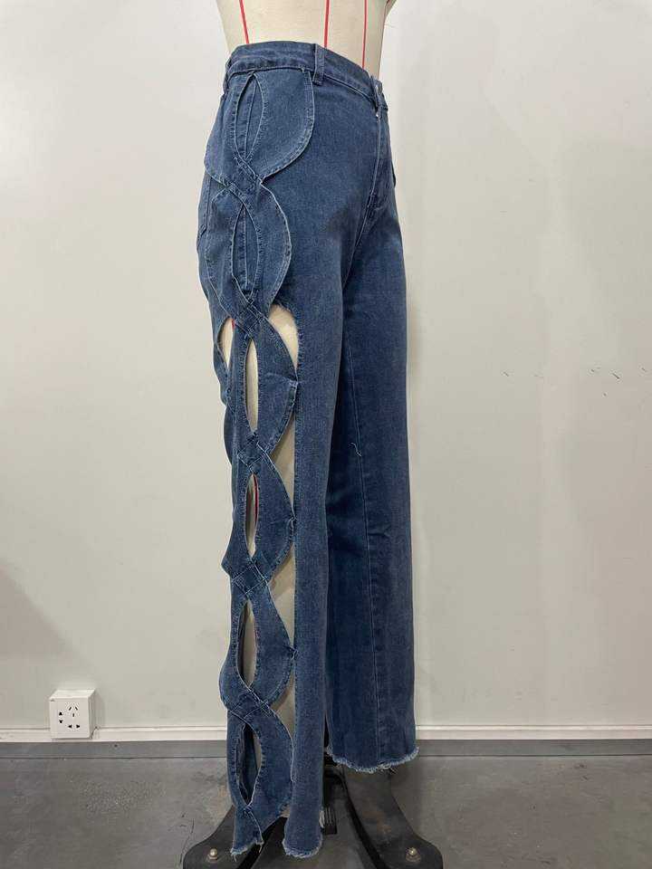 2026 New Summer Womens Streetwear Lace Hollow Out Denim Jeans Trendy Casual Trousers High Quality