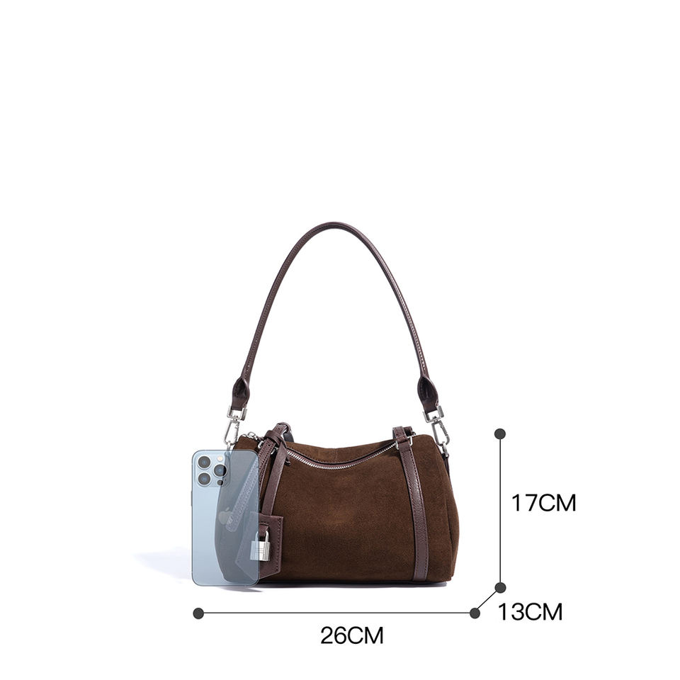 2026 New Winter Vintage Cowhide Leather Suede Handbag Women Frosted Leather Custom Retro Large Capacity Shoulder Crossbody Bags