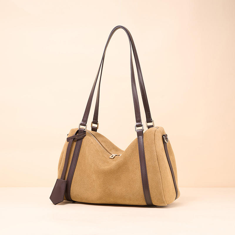 2026 New Winter Vintage Cowhide Leather Suede Handbag Women Frosted Leather Custom Retro Large Capacity Shoulder Crossbody Bags