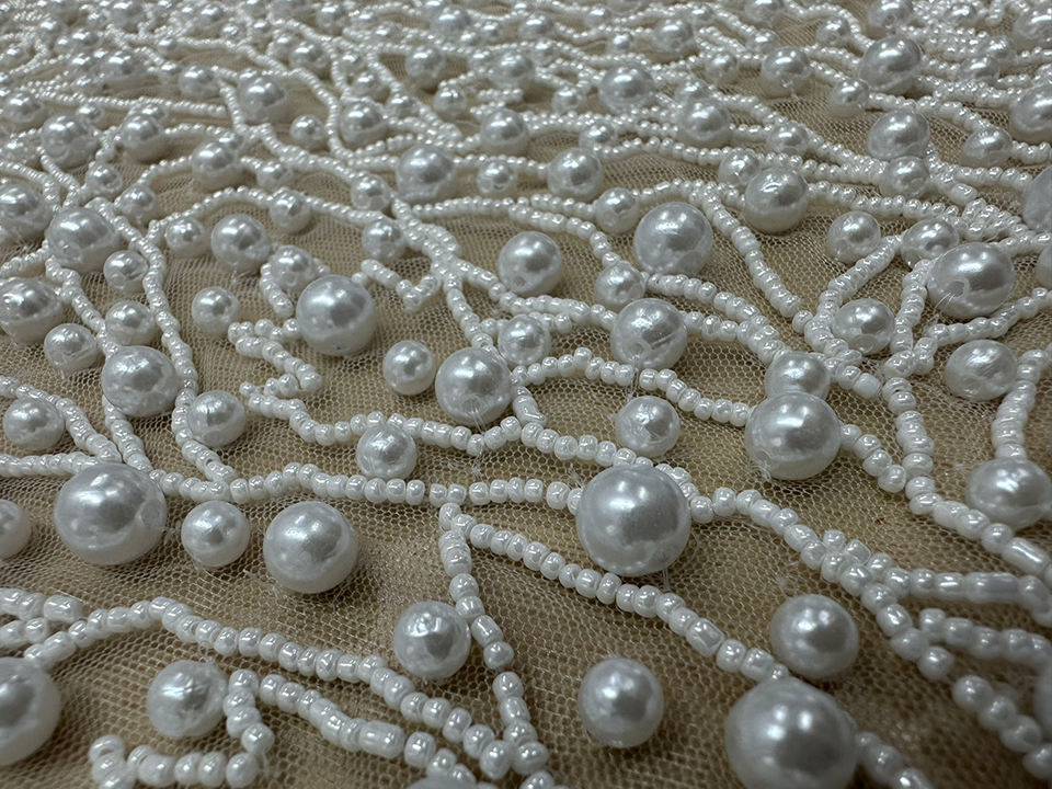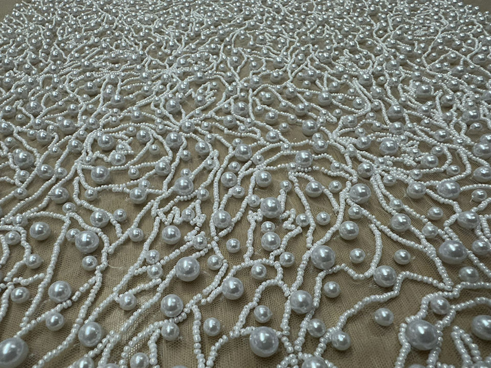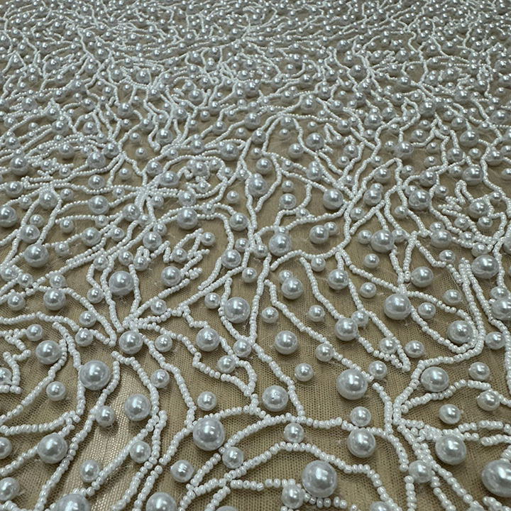 2026 New white Pearl Lace Dress Fabric for Bridal Wedding Embroidery Wedding Dress Bridal Fabric manufacturer hand made fabric