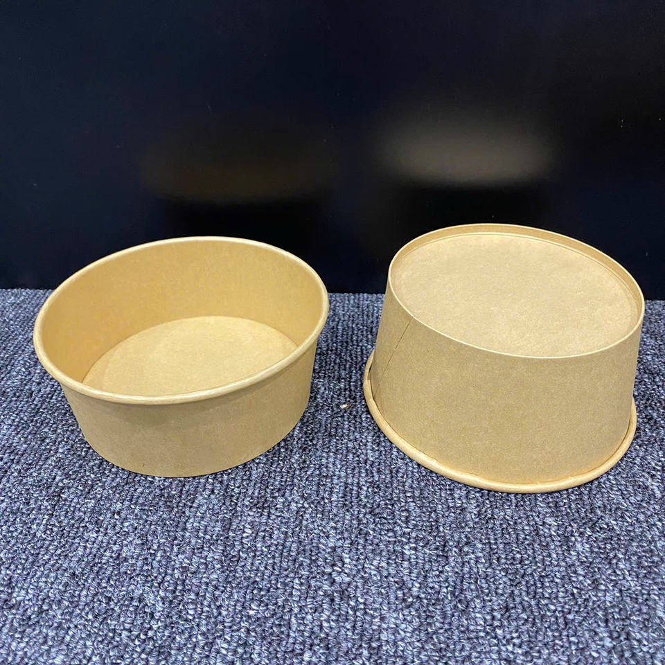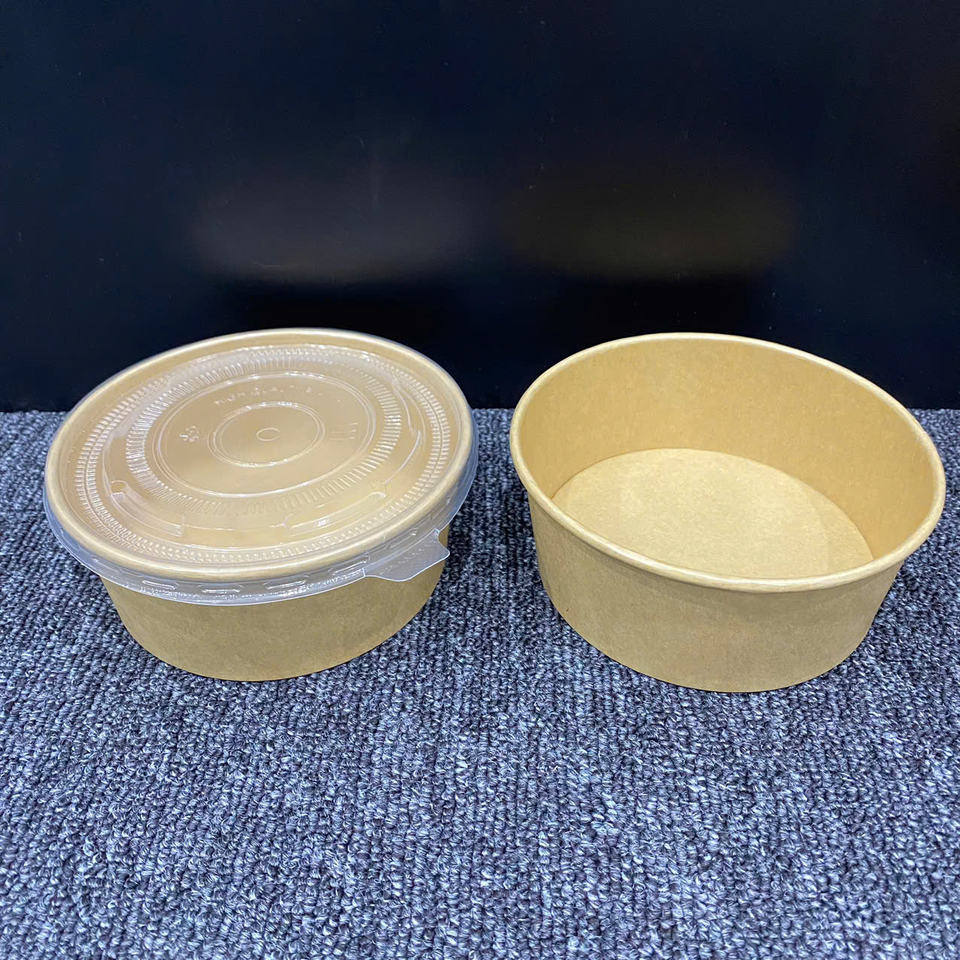 2026 Newest design Factory Kraft Paper Bowls Container Disposable Paper Bowl 1000ml with Lid Eco Friendly Food Salad Packing