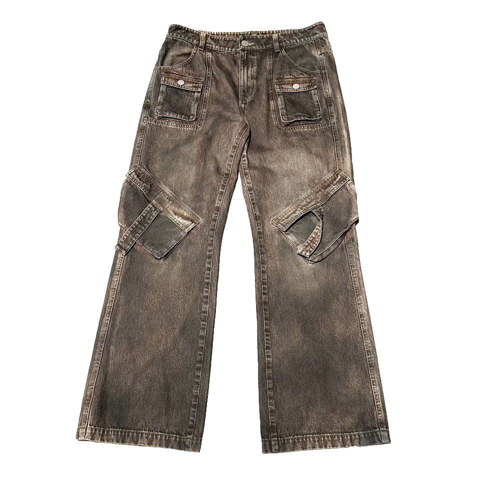 2026 Original Design Streetwear Custom Logo High Quality Men's Jean Homme Monkey Washed Baggy Cargo Brown Denim Jeans for Men