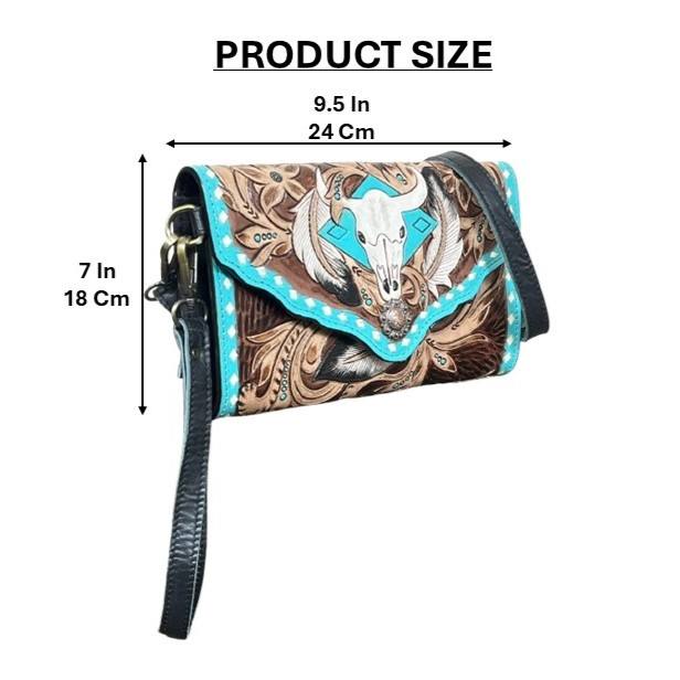 Product name:Western Hand Tooled Floral Leather Clutch Minibag