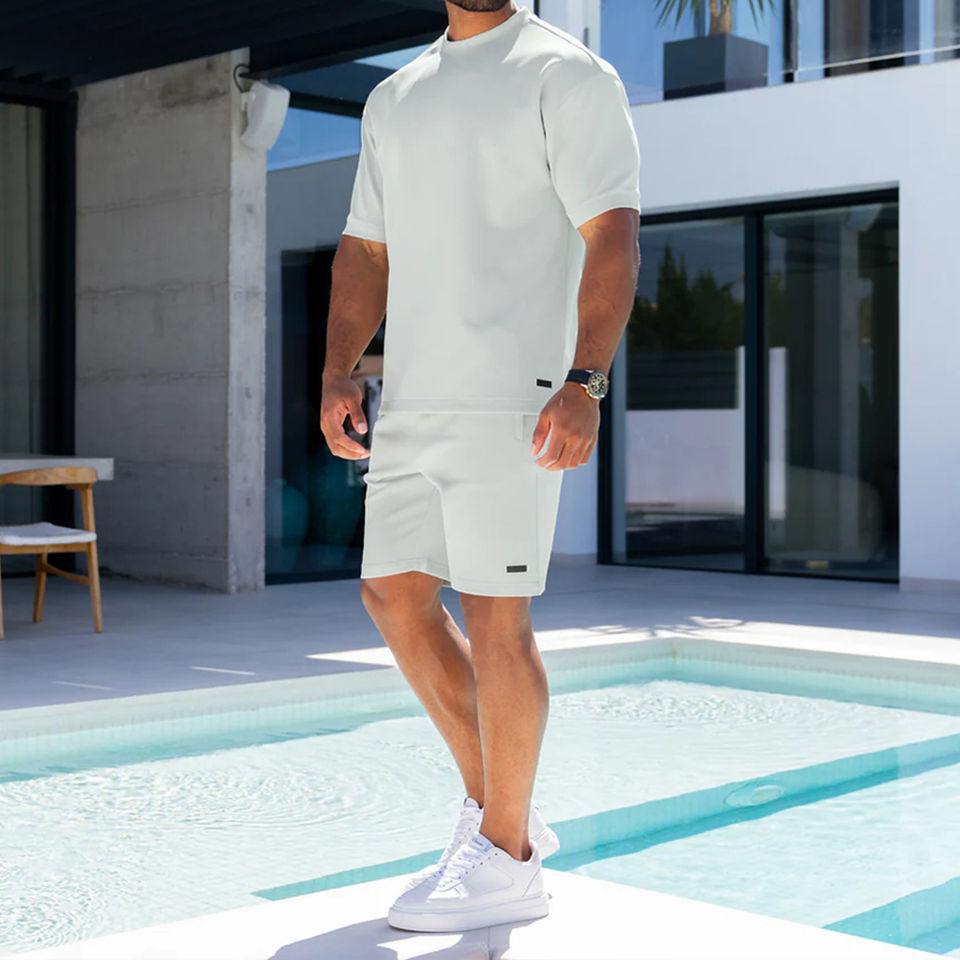 2026 Premium Quality Wholesale Cotton Twin Set Shorts and T Shirt Set With Your Own Design for Men Breathable Twin Sets