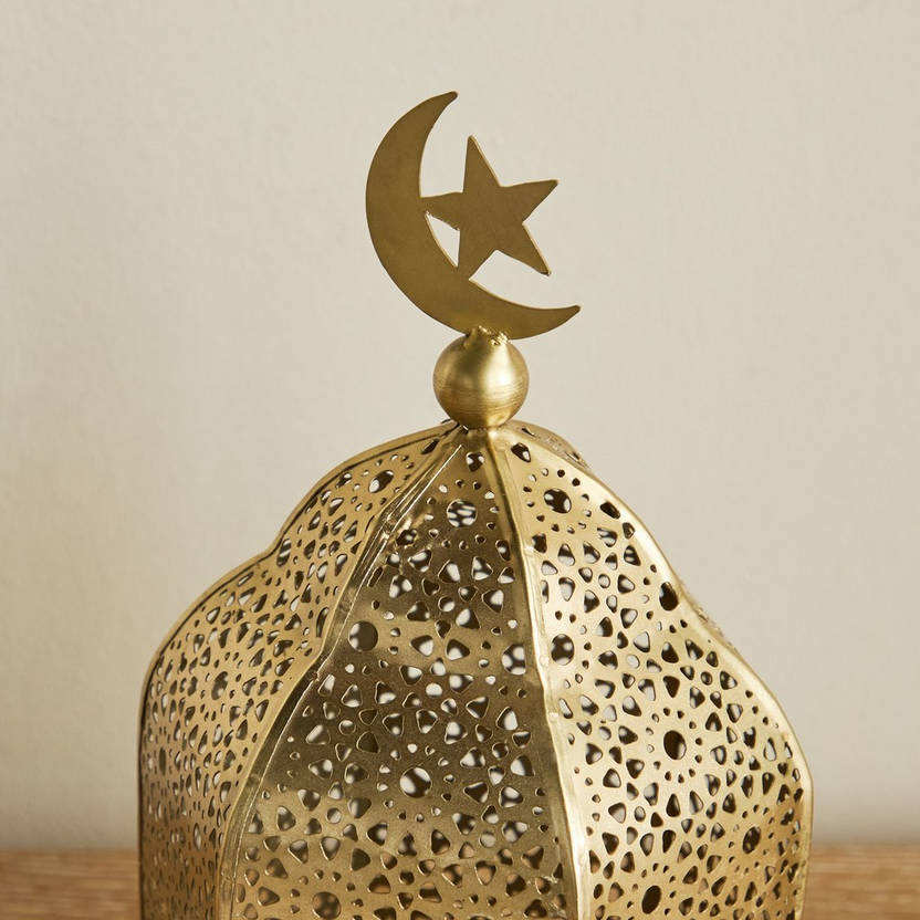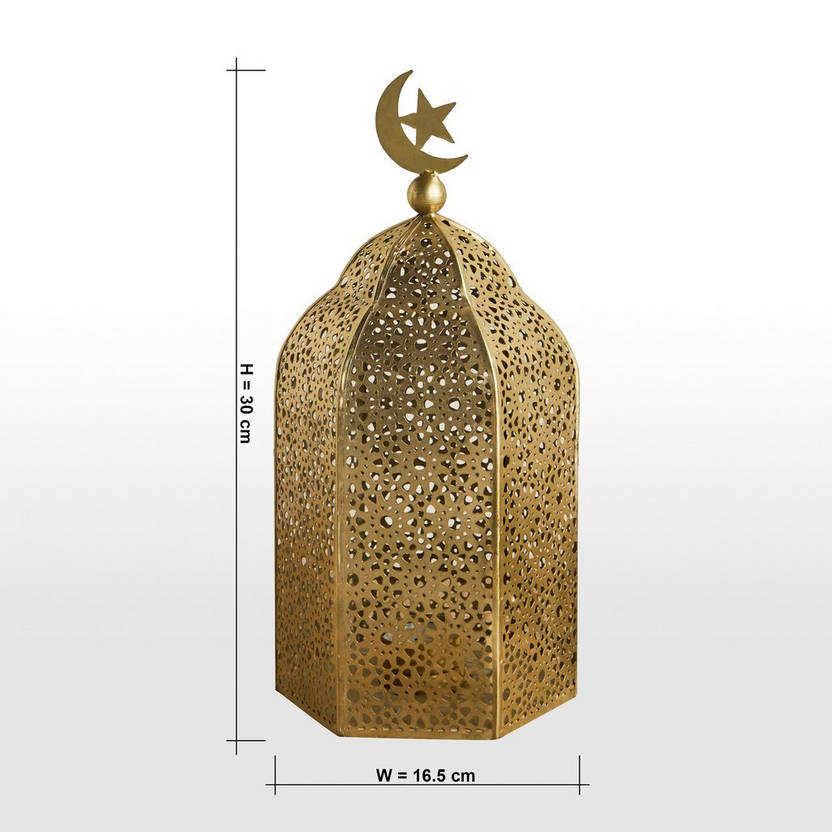 2026 Ramadan Home Decorations Handmade Iron Moroccan Lantern with Crescent Moon Design for Floor and Tabletop