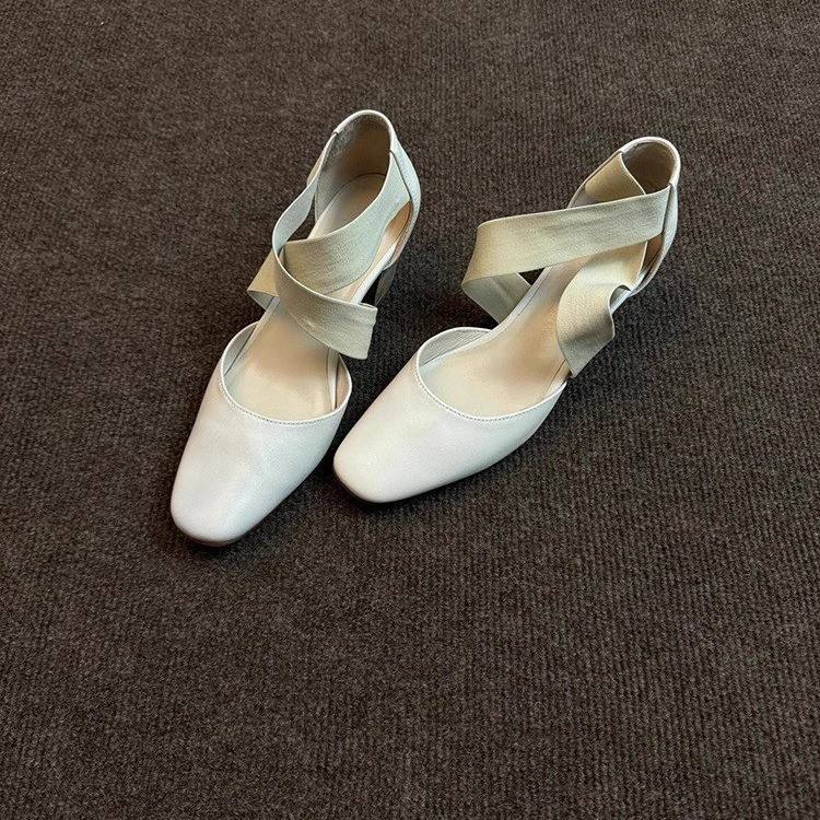 2026 Retro Versatile Ballet High Heels for Women Early Spring Chunky Heel Cross Strap Hollow Casual Closed Toe Sandals