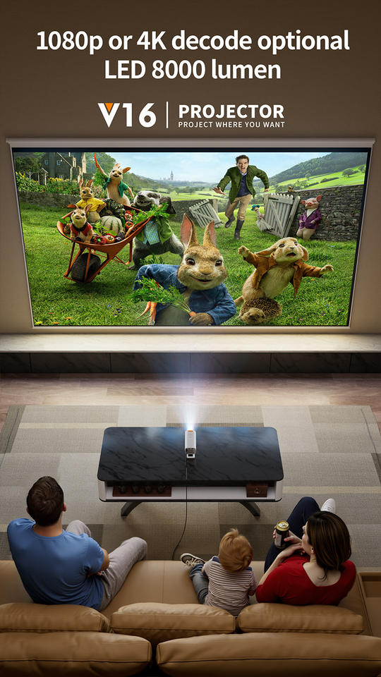 2026 Smart Projector 4K Android 12 Eye Protection Mini Portable 1080P Home Theater LCD Projector