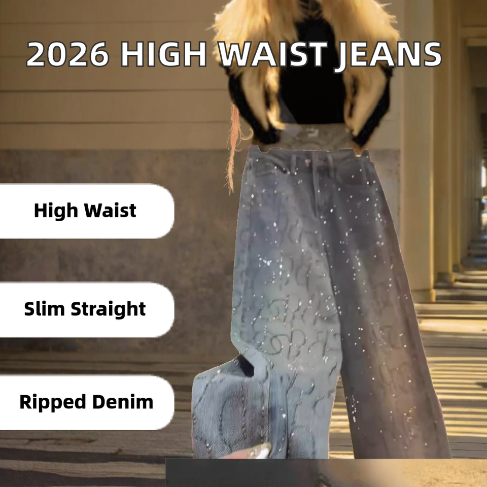 2026 Spring New High Quality Versatile High Waist Boot Cut Denim Women's Jeans Eco-Friendly Windproof Safari Diamond Casual
