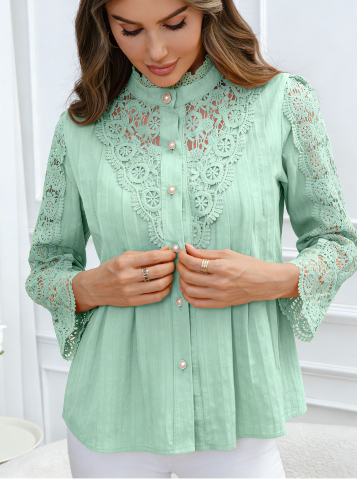 2026 Spring/Summer Women's Office Shirt with Lace Decoration Long Sleeve Knitted Cotton Regular Fit In-Stock From Georgia