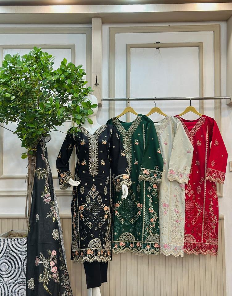 2026 Ssumaira Collection Presenting 3 Piece WInter Dress Fabric Cotton Embroidery Trouser Set