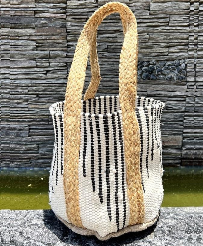 2026 Top Trending Cotton Jute Tote Bag High Quality Customisable Bohemian Handbag Reusable Shopping Bag Indian Supplier Women's