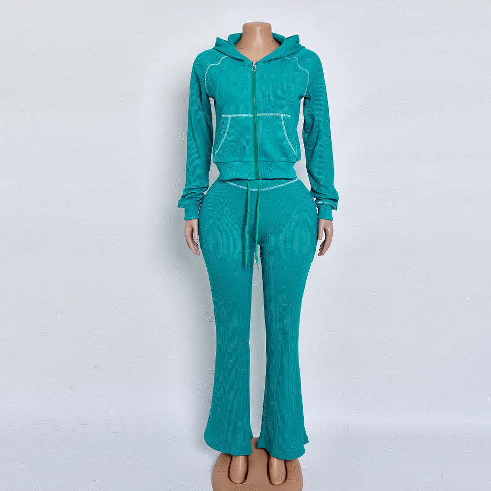 2026 Top Trending Women Custom Waffle Knit Sets Zipper Hoodie Jacket and Sweatpants Lounge Wear Two Piece Set Women for Women