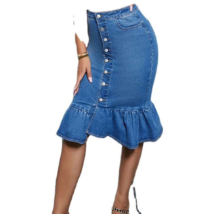 2026 Trending HSI Fancy Top & Bottom Model Wash Semi Stretch Denim Skirts With A Classic Cargo Belt Multi Pockets Fancy