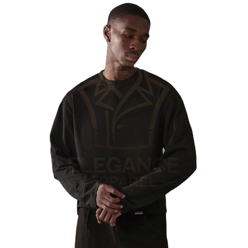 2026 Trendy Men's Full Sleeve Shirts, Best Price Wholesale Long Sleeve Solid Black Color Casual Fashion Outdoor Wear T-Shirts