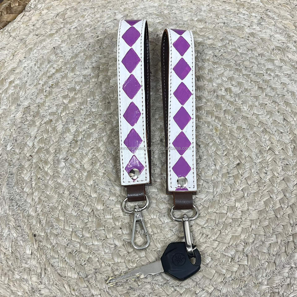 Product name:Genuine Checkered Leather Wristlet Keychain