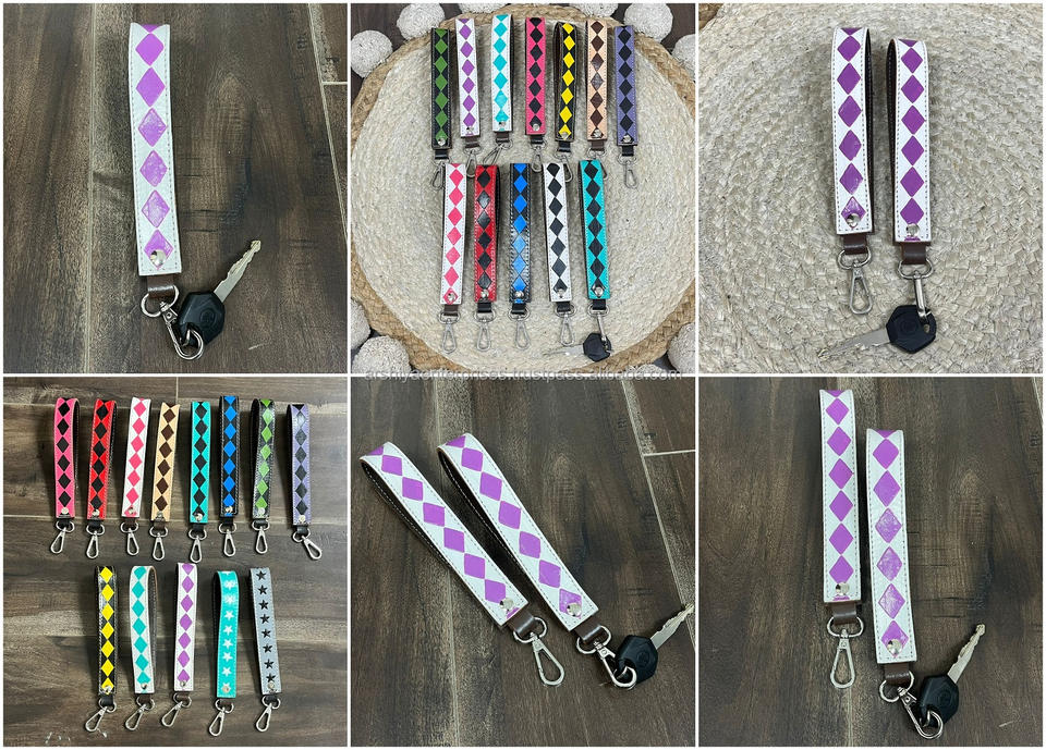 Genuine Checkered Leather Wristlet Keychain