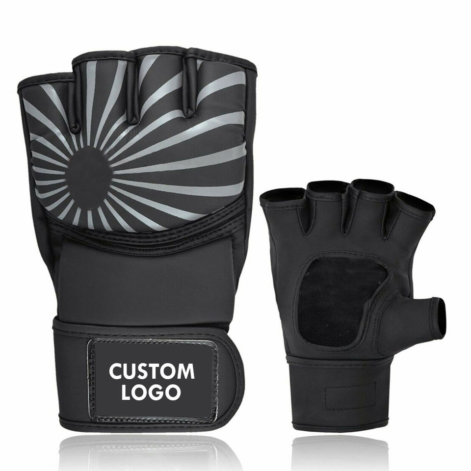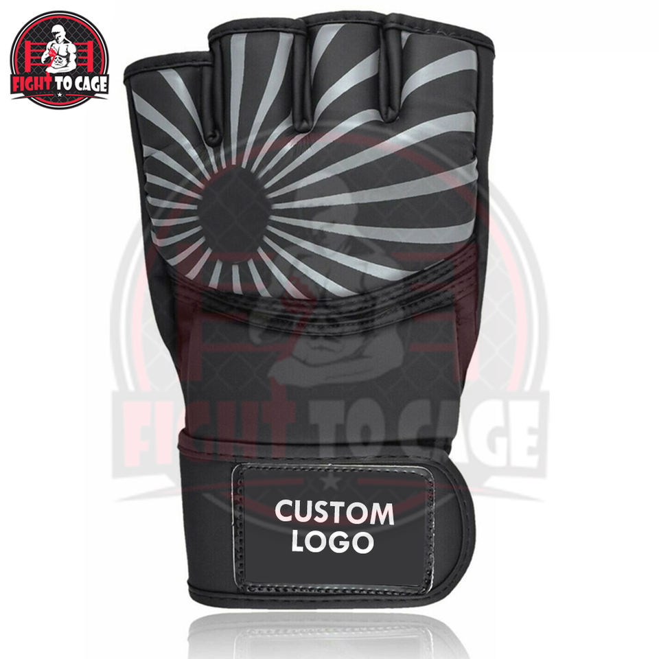 2026 Unique Design Gray Black Leather Microfiber Hook Loop Closure Half Finger Non Slip Adjustable Wrist Strap Boxing MMA Gloves