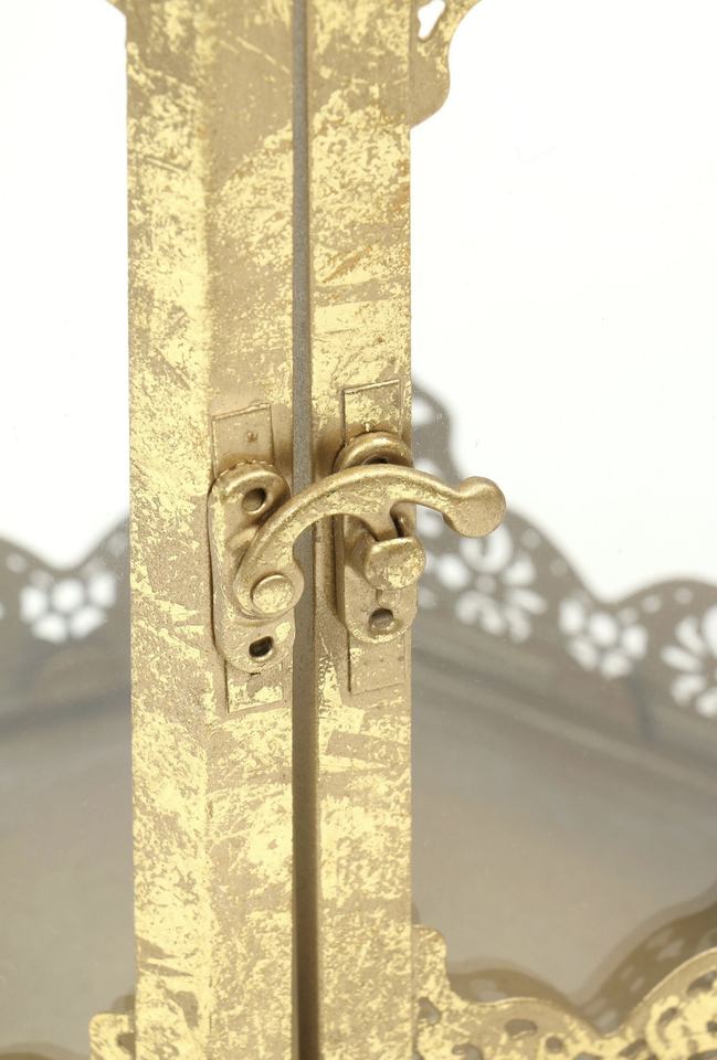 2026 Vintage Design Luxurious Gold Metal Glass Handmade Moroccan Lantern Pillar Holder for Home and Ramadan Decorations
