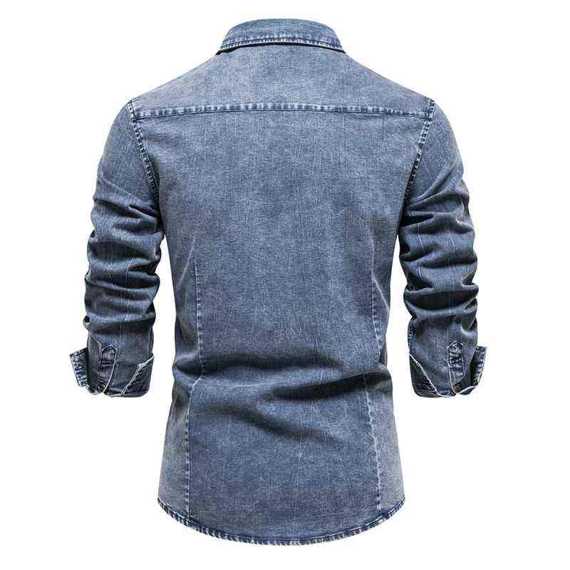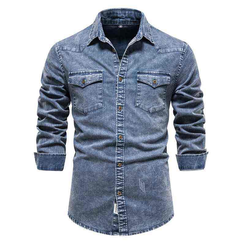 2026 Vintage Streetwear Long Sleeve Denim Jean Shirt US Size Men Casual Cotton Washed Denim Jeans Shirt For Men