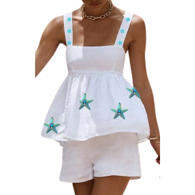 Products Name:Summer Sea White Top Lovely Summer Look Beach Top