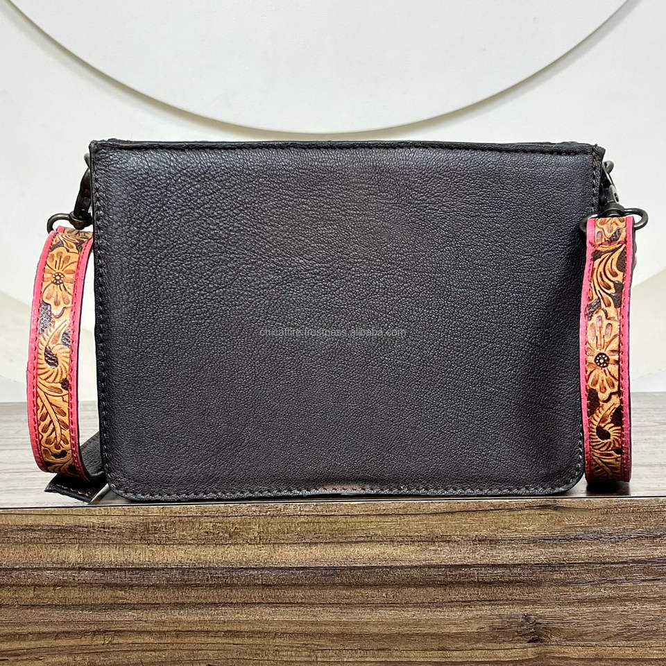 Product name:Hand Tooled Leather Sling Bag With Wristlet