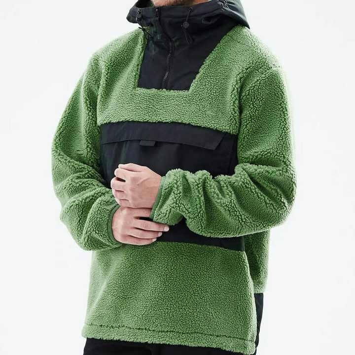 2026 Winter Custom Embroidered Sherpa Pullover Block Tan Color Fluffy Faux Fur Fleece Hoodie Oversized men's hoodies